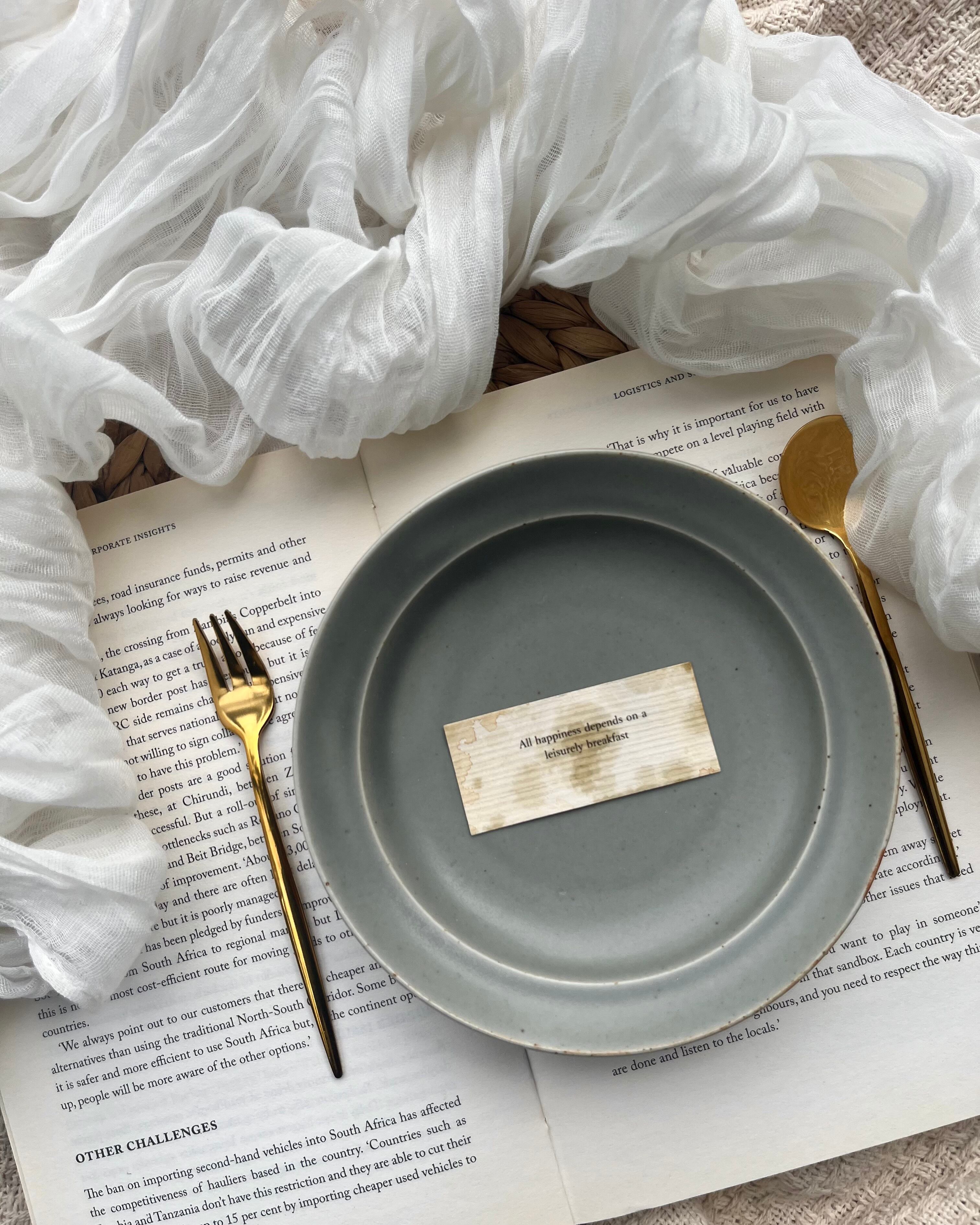 マットなグレージュのベースに、黒やベージュのランダムなスポット模様が素朴で温かい雰囲気をプラス