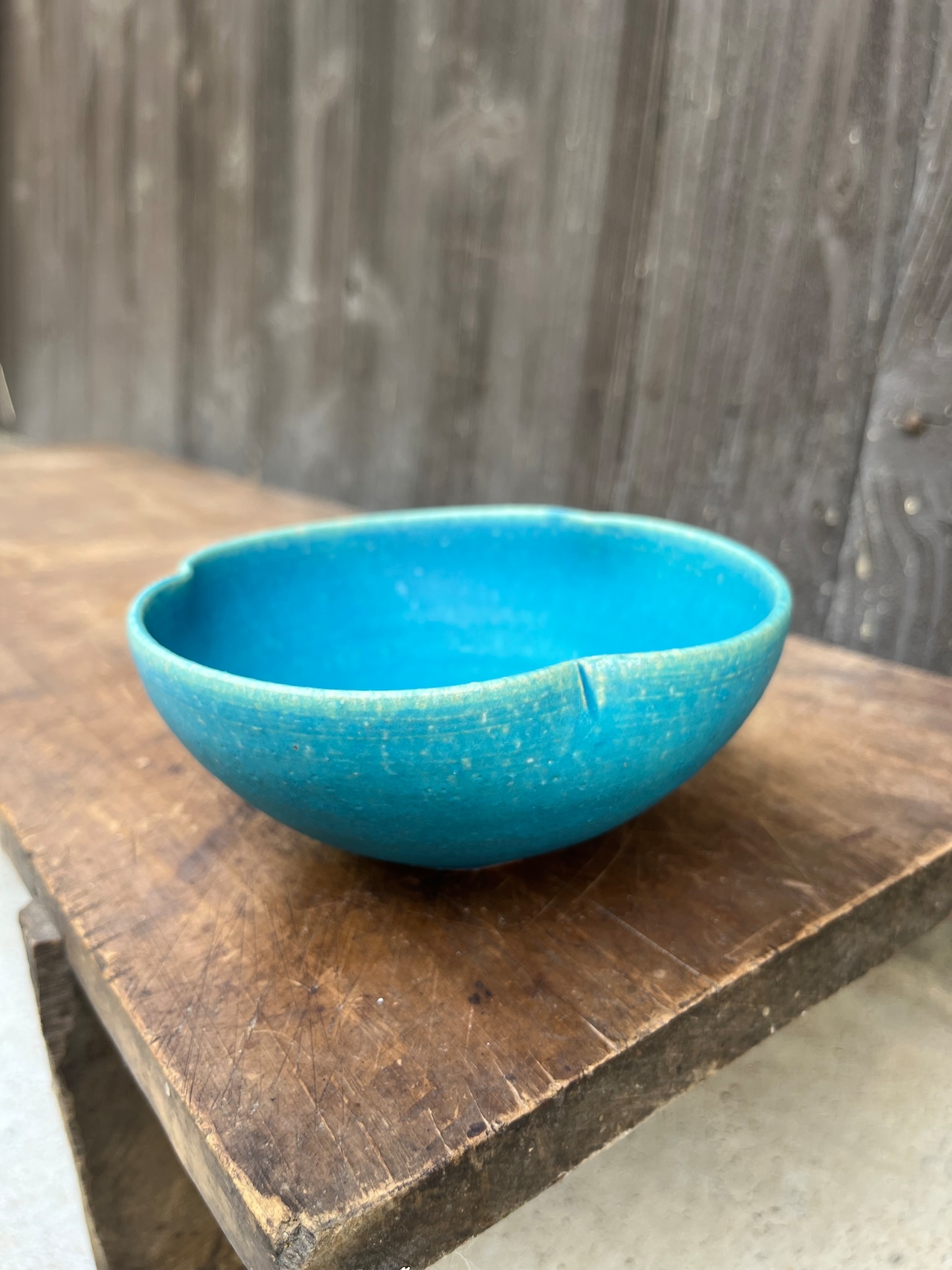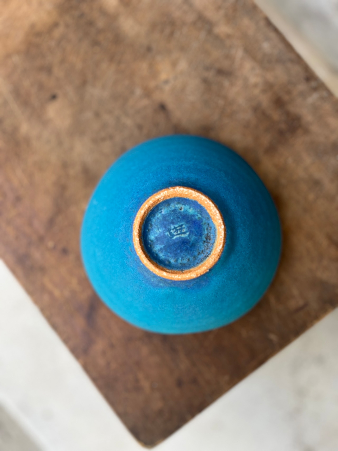 鮮やかなトルコブルーがとても美しく、土の温もりも感じられる素朴な風合いが魅力です。