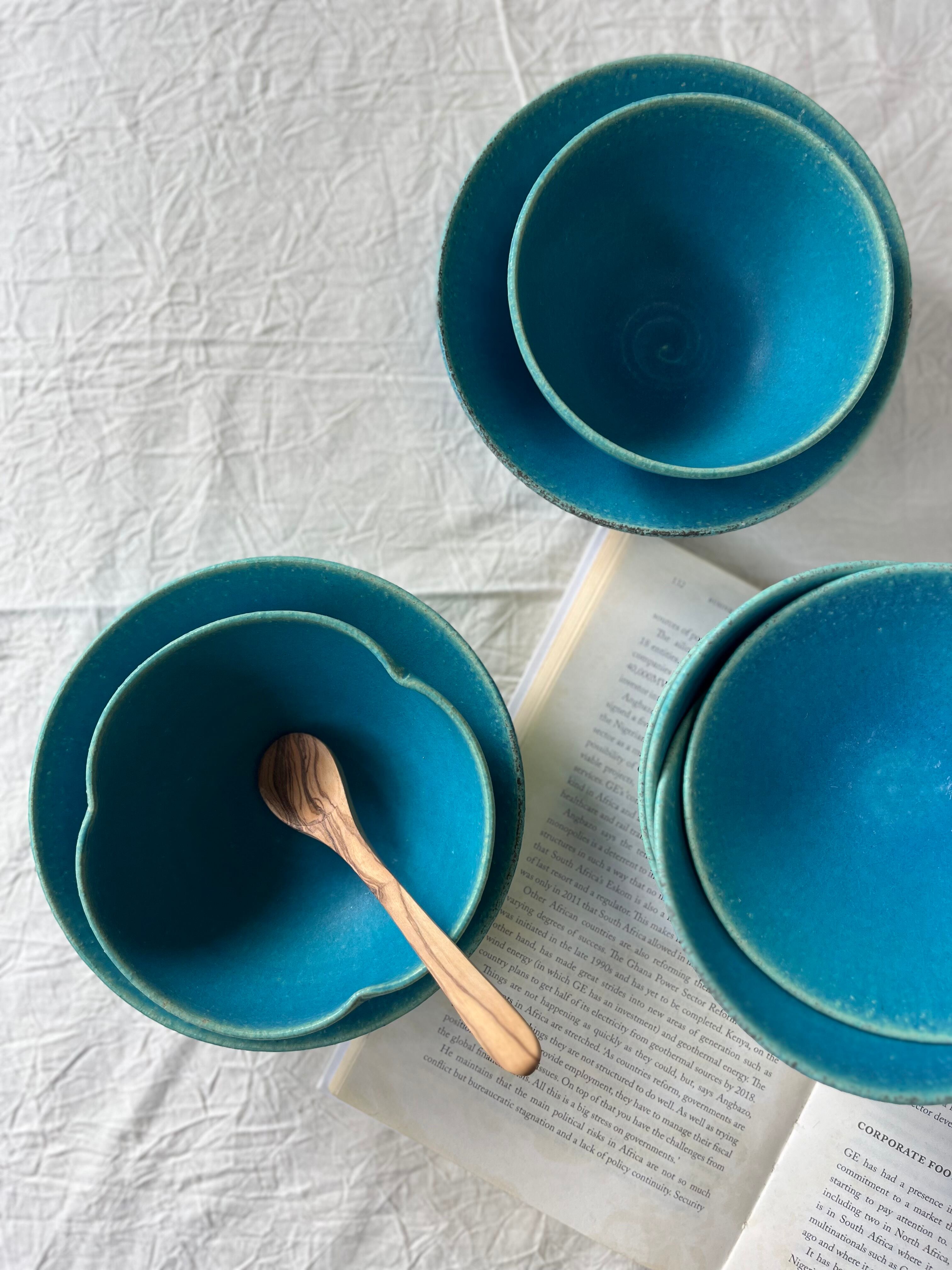 信楽焼の窯元「遊楽窯」のトルコブルーシリーズ。