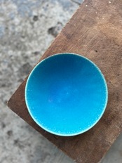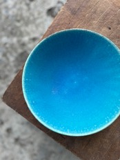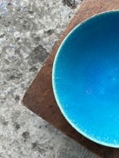 鮮やかなトルコブルーがとても美しく、土の温もりも感じられる素朴な風合いが魅力です。